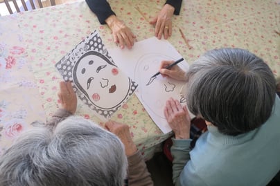紙を抑えて、見本をもって、お絵かき担当のお客様はどんどんおかめさんを描き上げていきます✨これぞ火曜日のお客様のチームワークですね♪