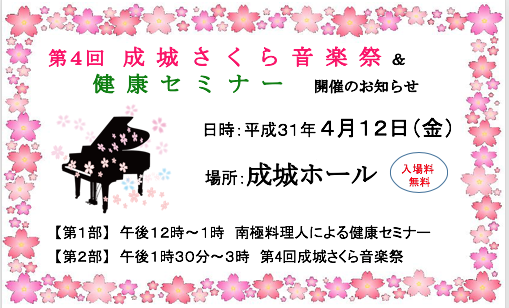 4月12日(金)12時〜第4回成城さくら音楽祭を開催します。是非、ご参加ください。入場無料です!