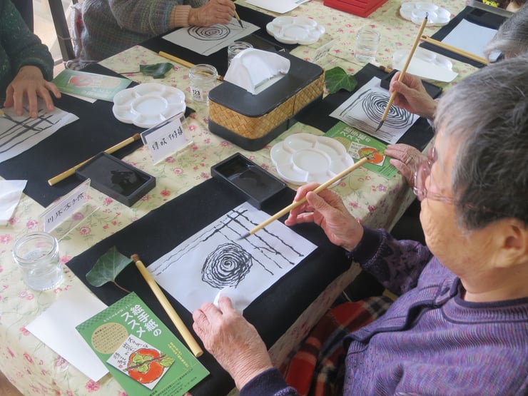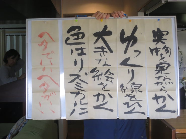 筆の使い方の練習でも、お一人お一人の個性が光り、芸術的です。