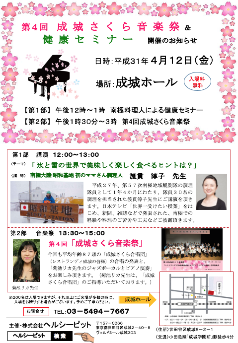 4月12日(金)に第4回成城さくら音楽祭が開催されます。入場は無料です!